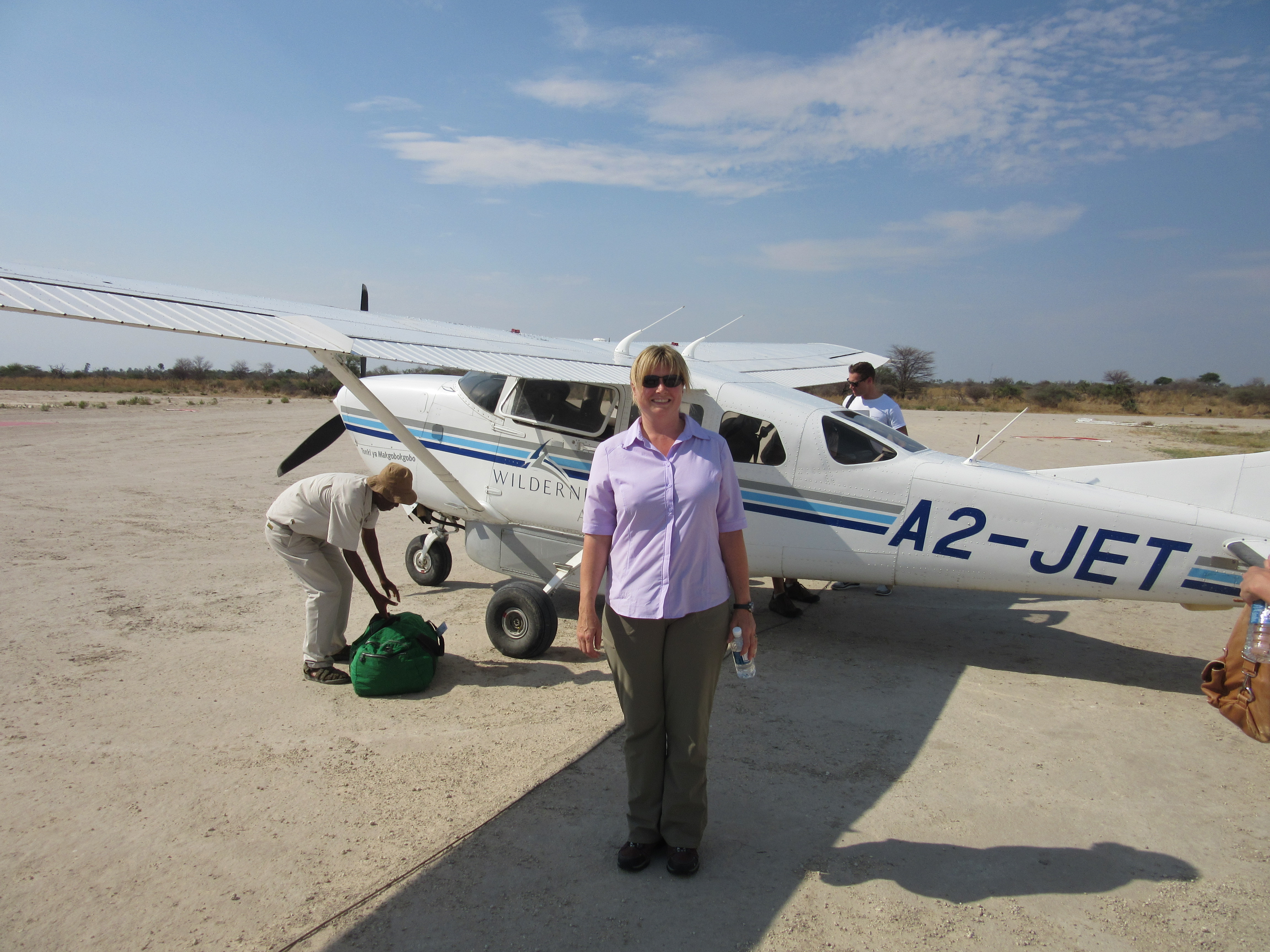On our very last morning we opted not to get up at 5:30am and go out on a game drive. We had seen so much already and had a very long journey ahead. So instead, we slept in and packed our things, had brunch and said our farewells. We were driven to the airstrip around 11am to catch our plane to Maun. Here is the pane that took us there. It was the largest of the three we took around the Delta.