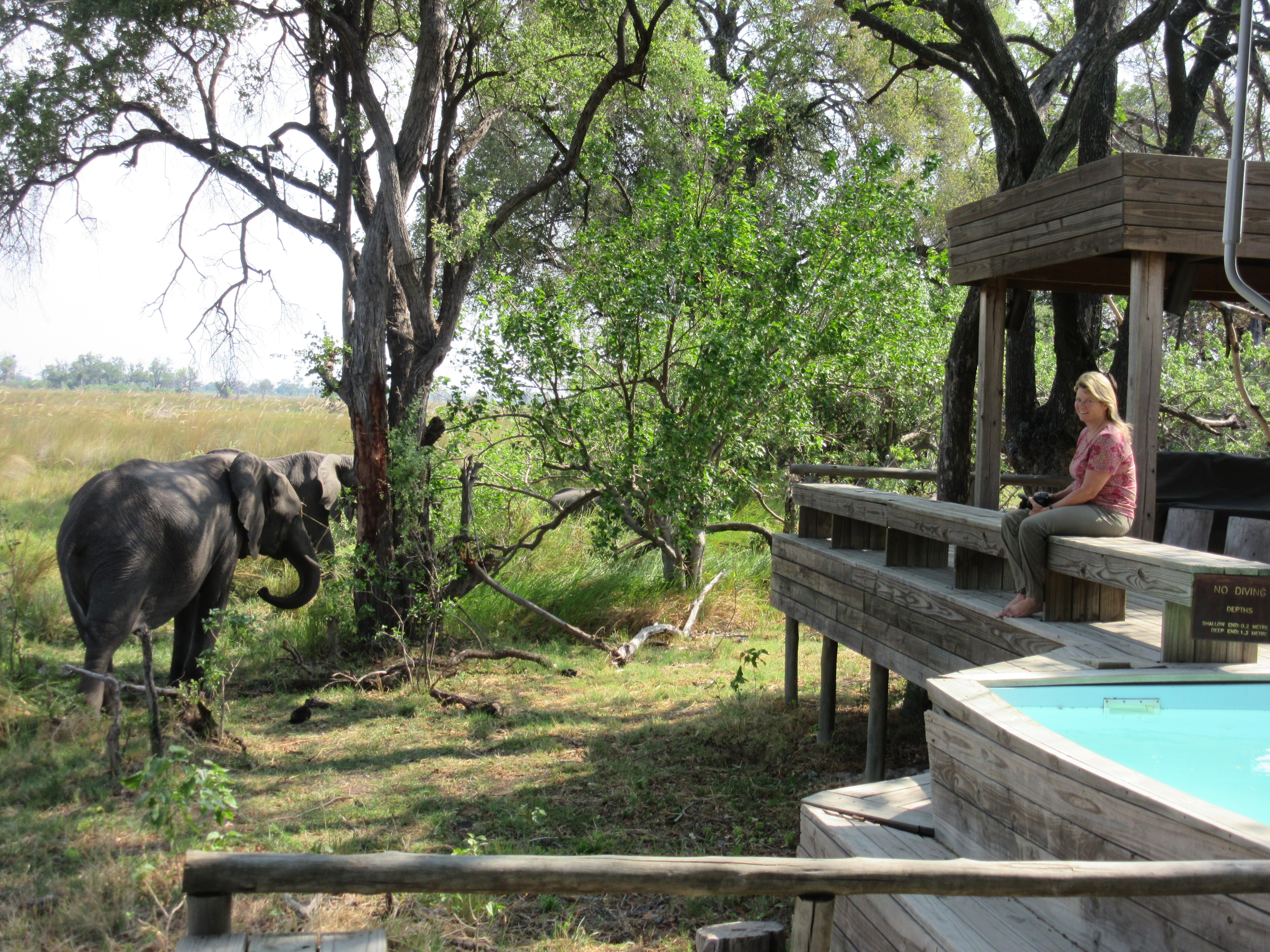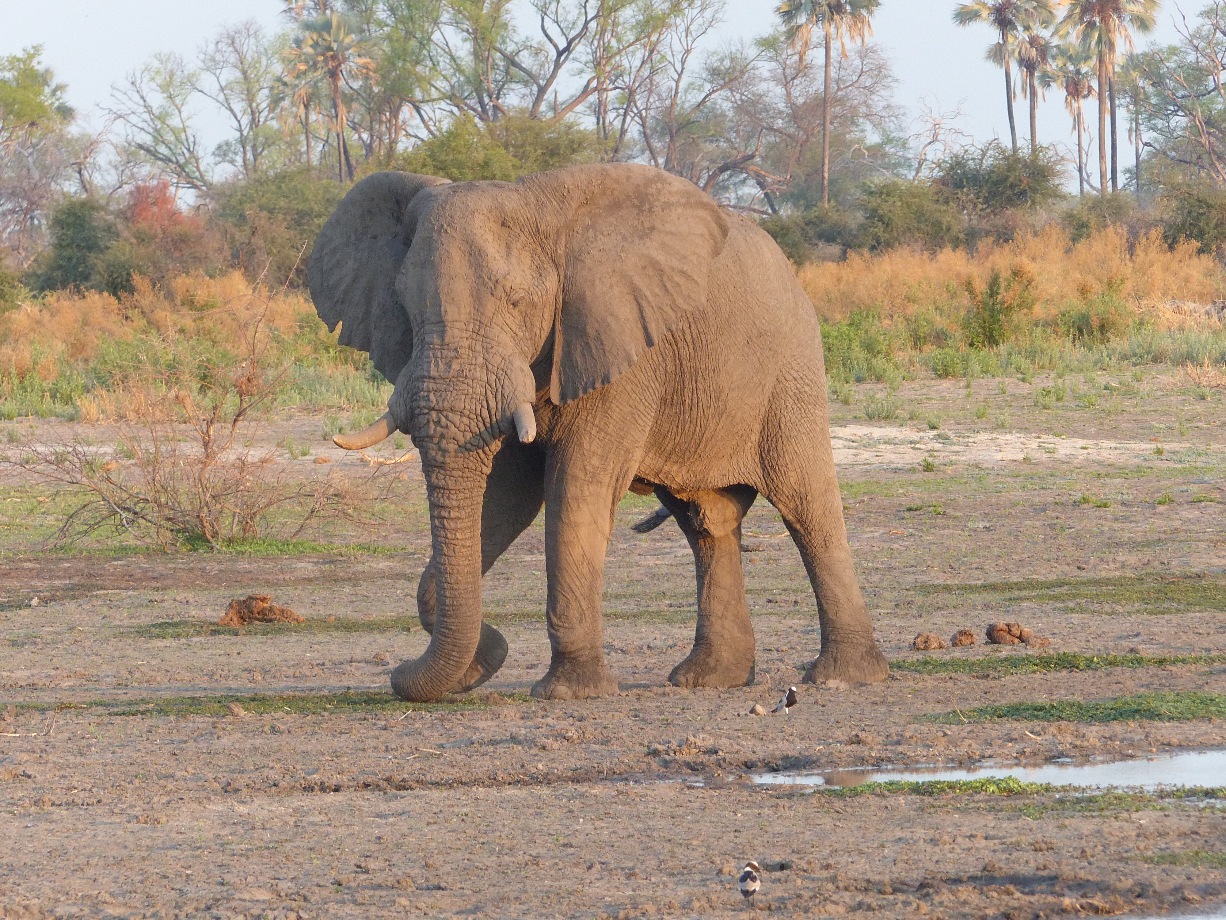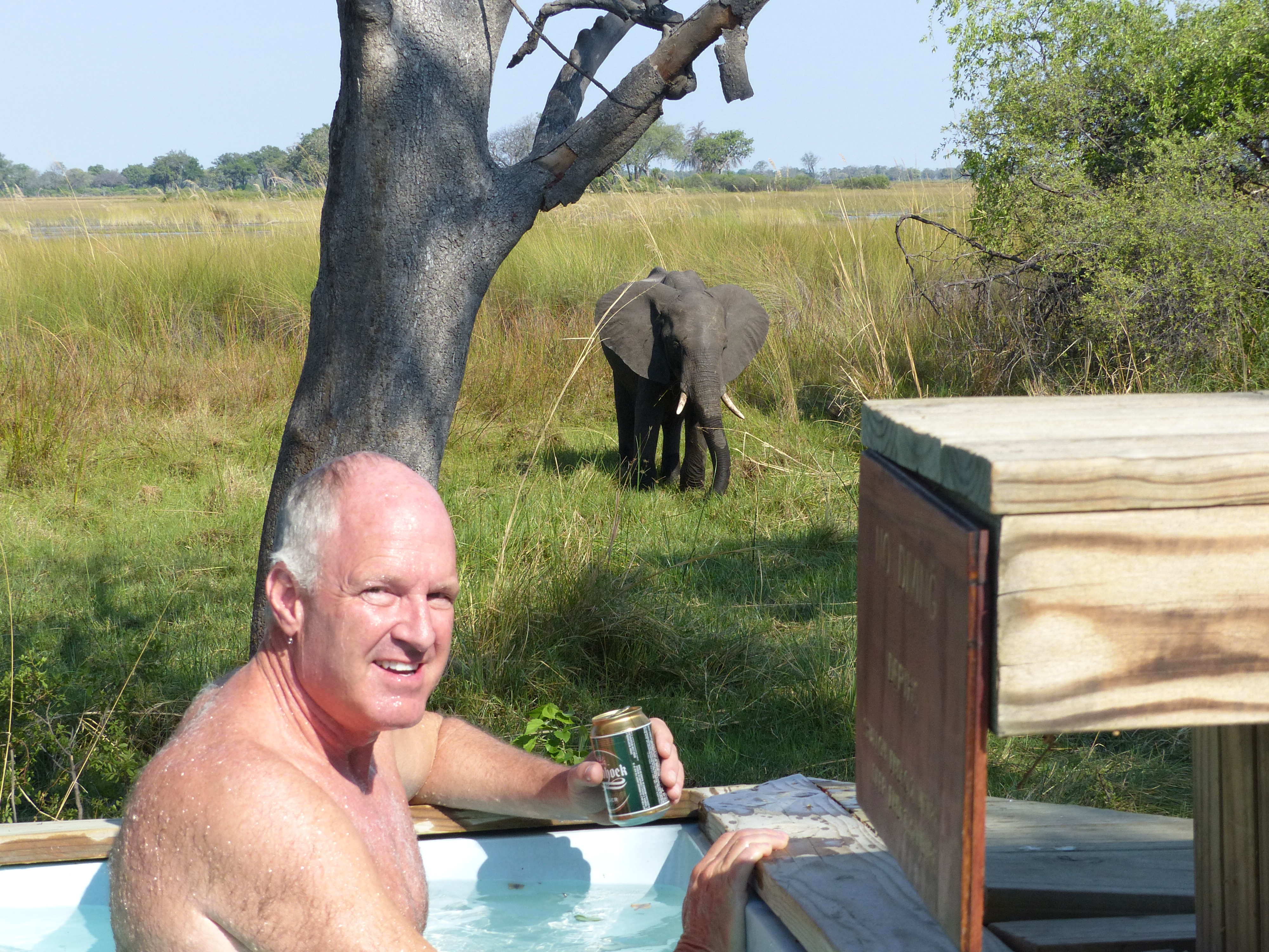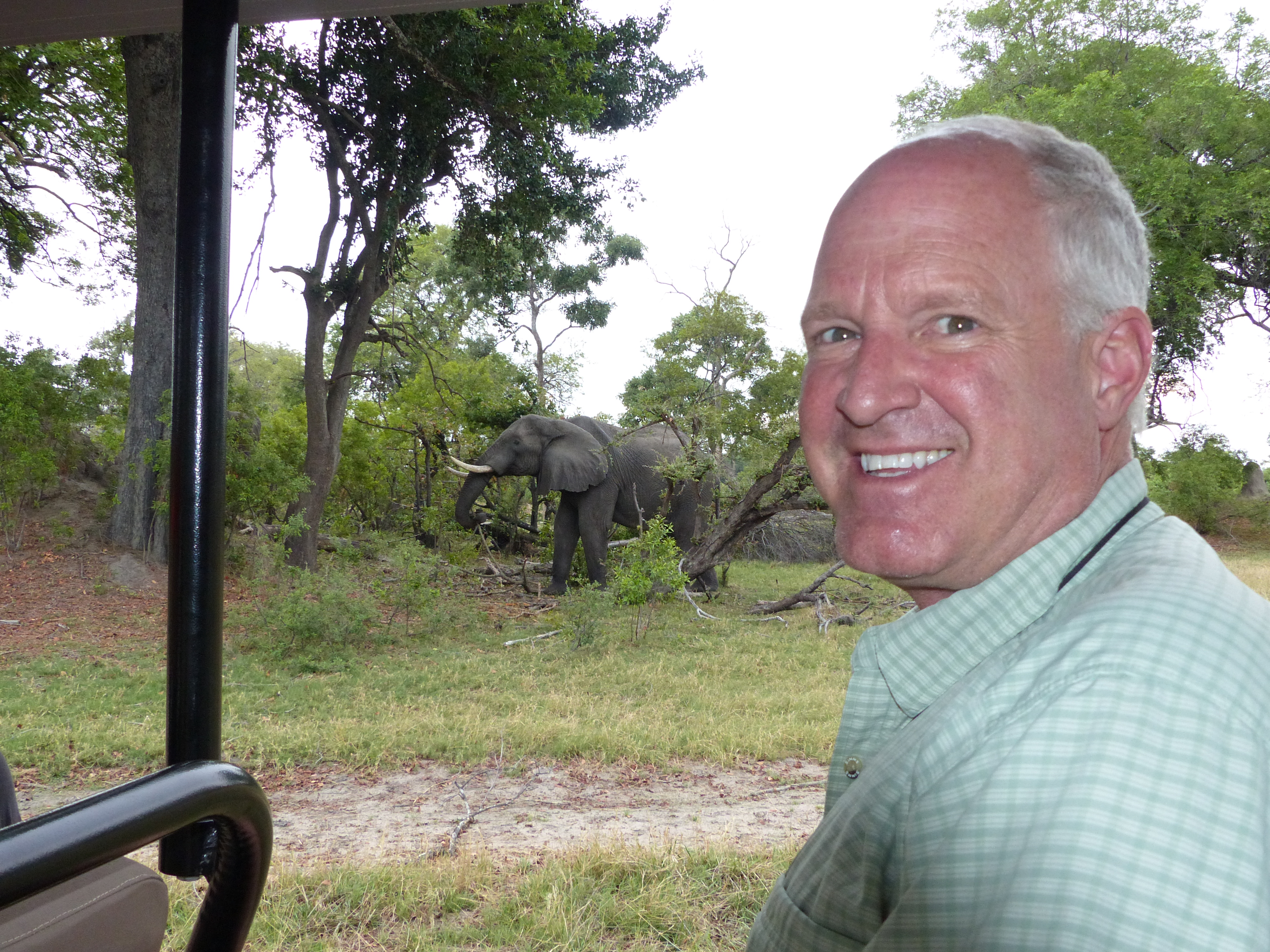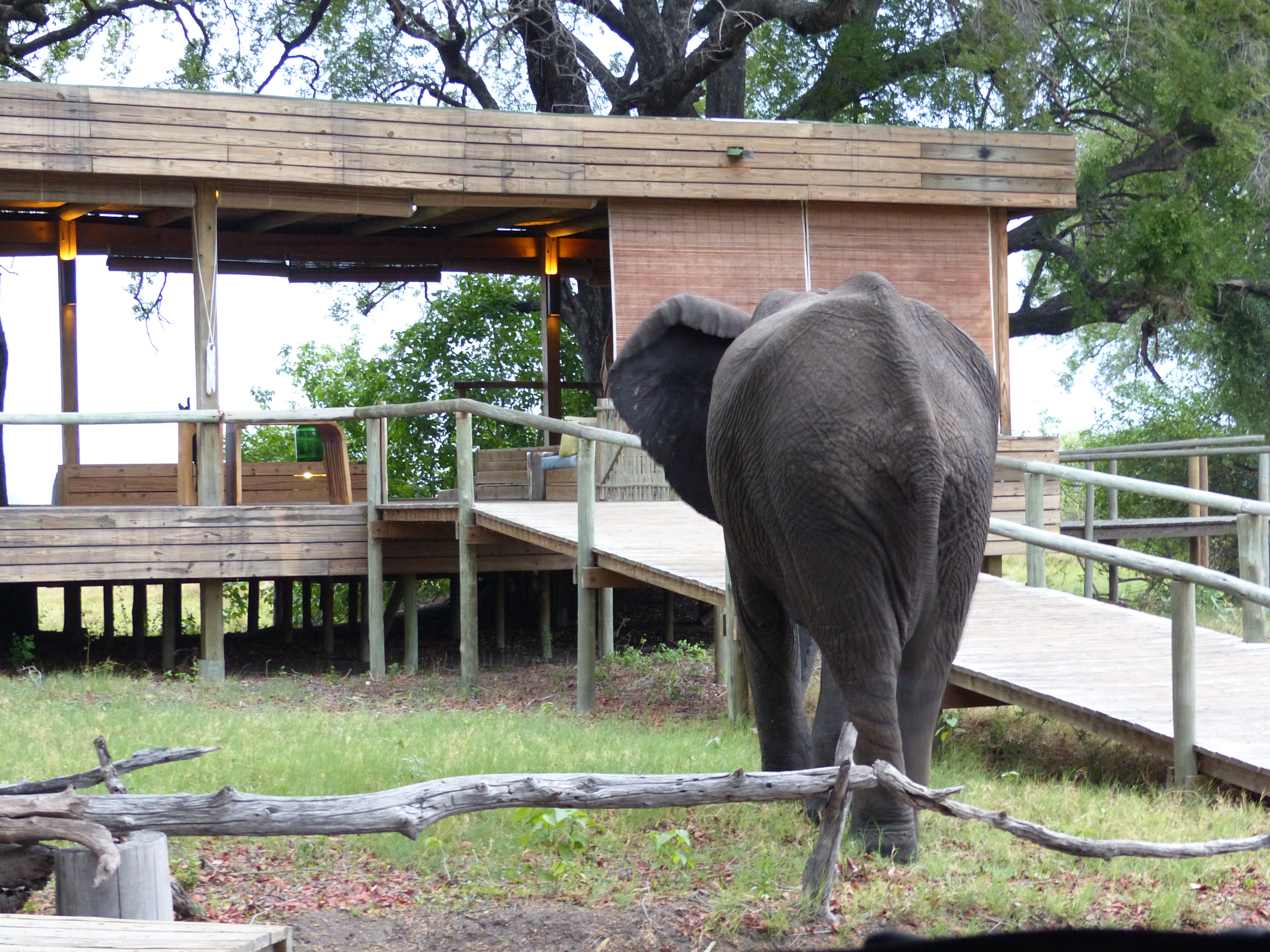 Here is an elephant that came into camp one morning just as we were getting ready to go out on our game drive. We are in the vehicle waiting until it is safe to drive off. It’s amazing that the elephants don’t do more damage to the structures, but they’re pretty good at avoiding them.