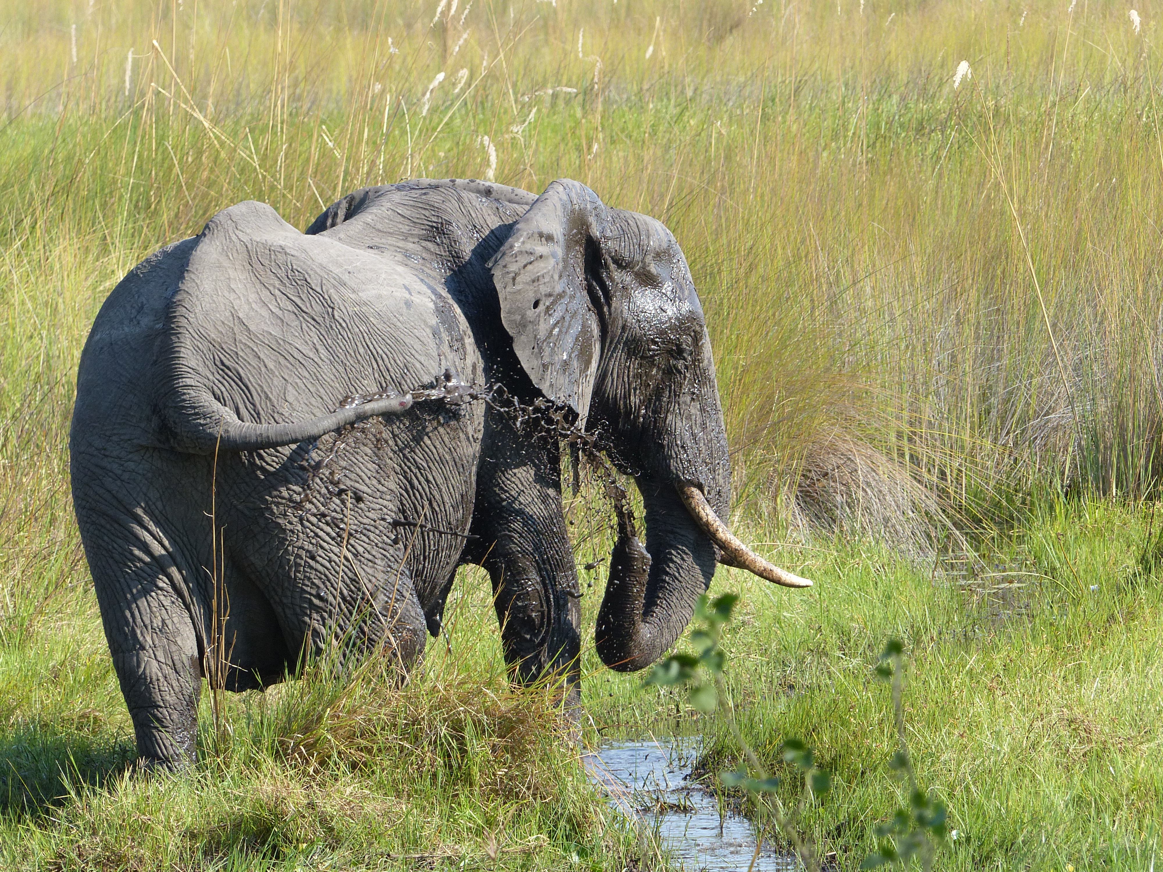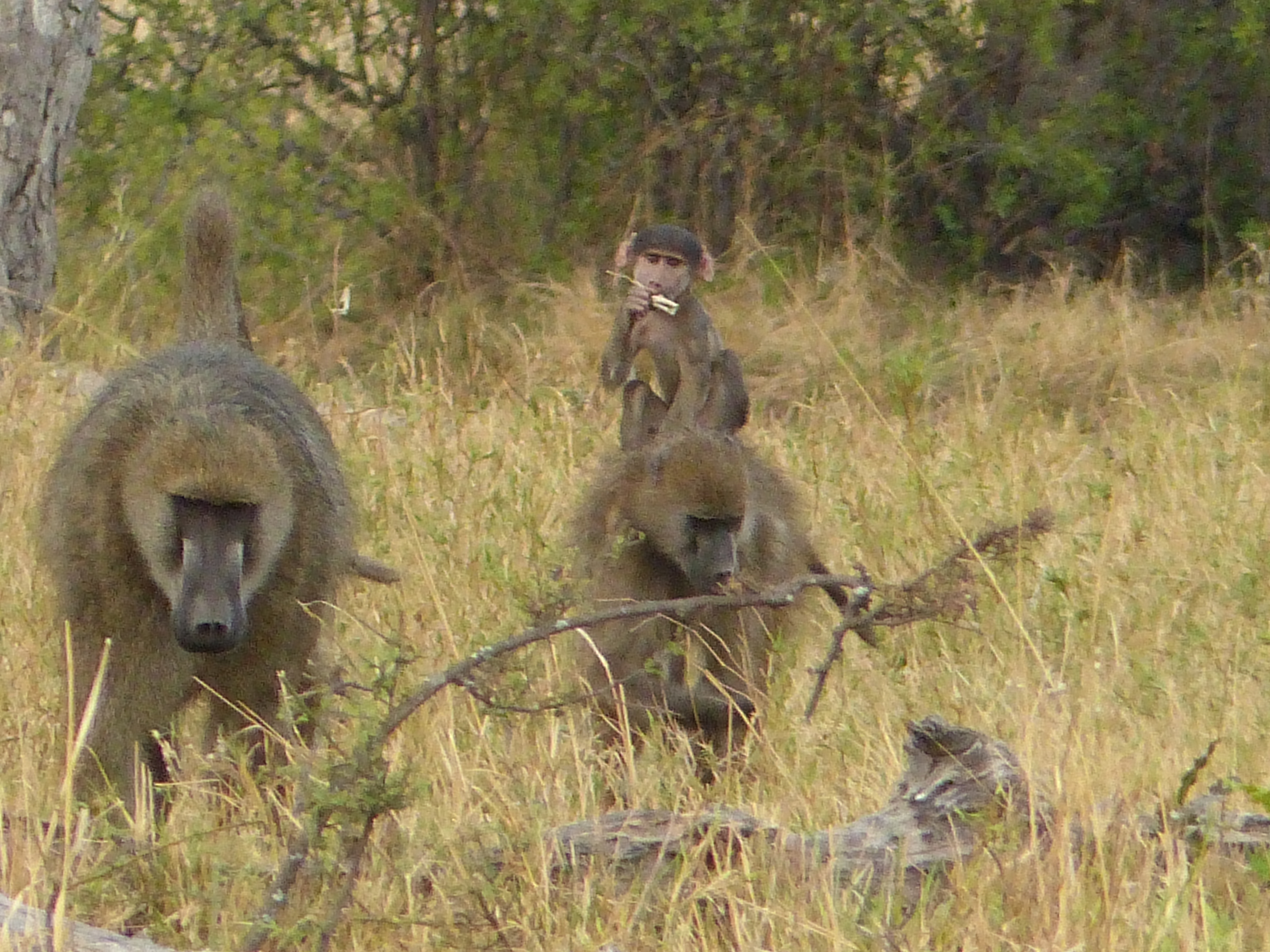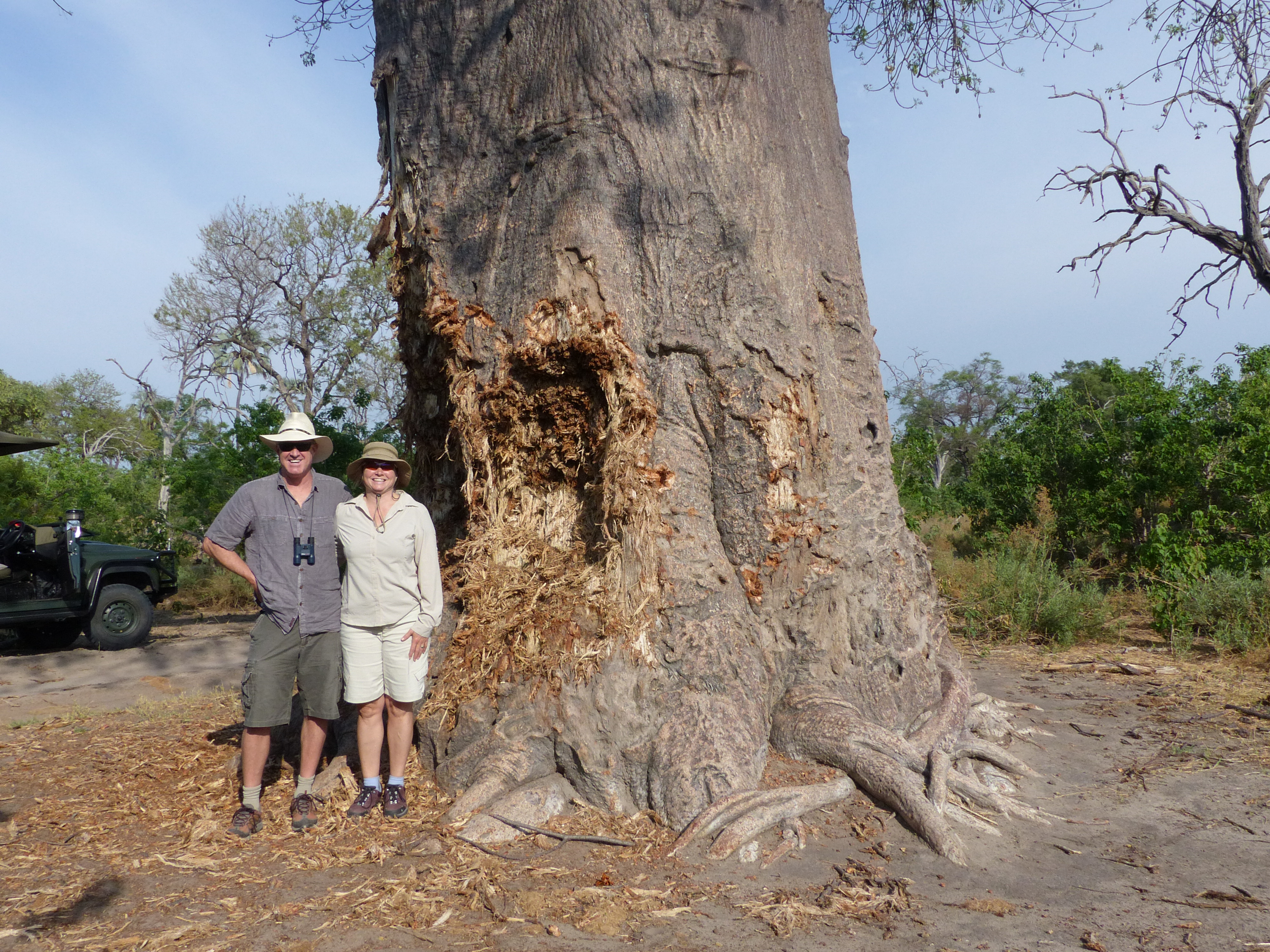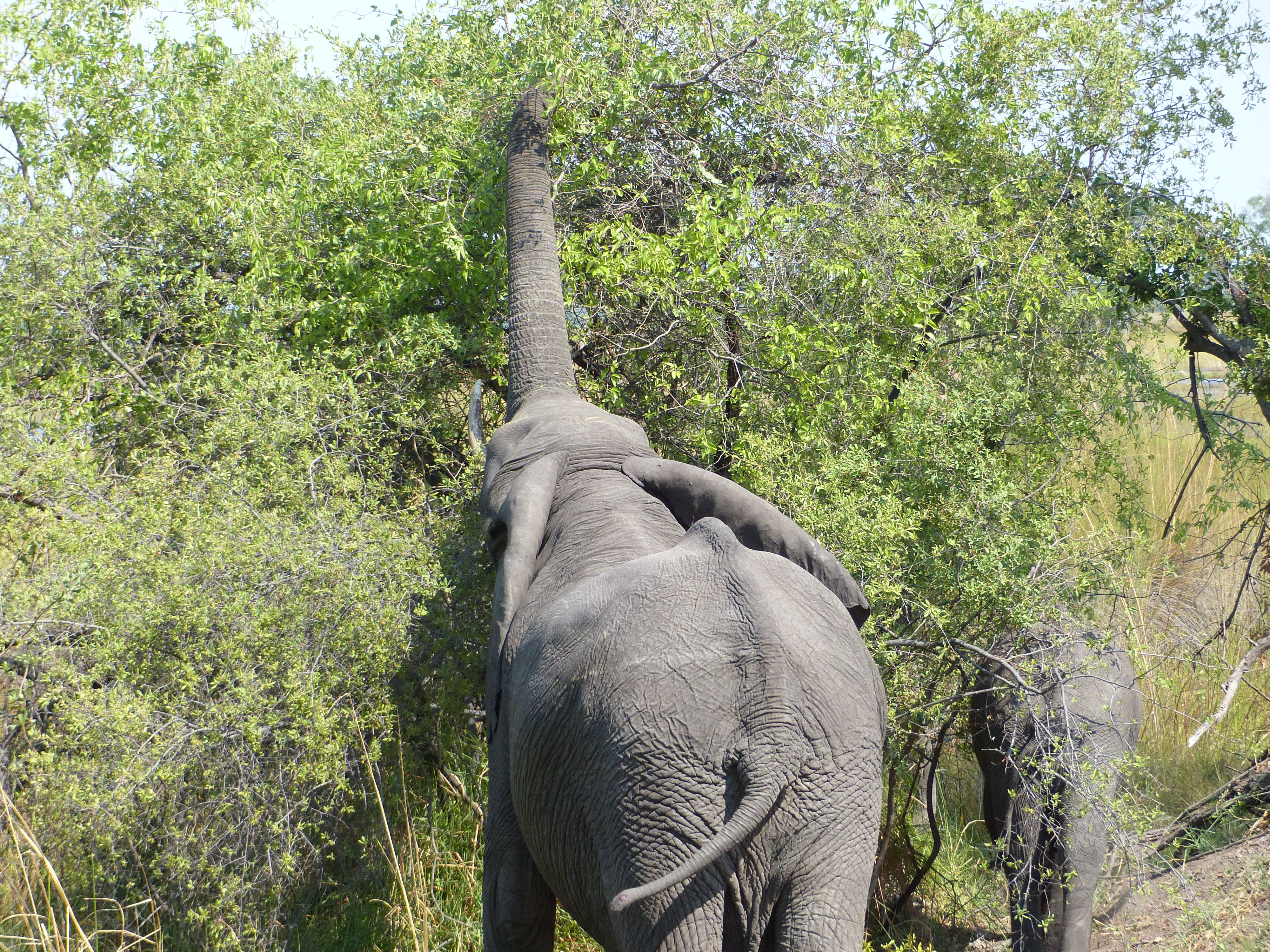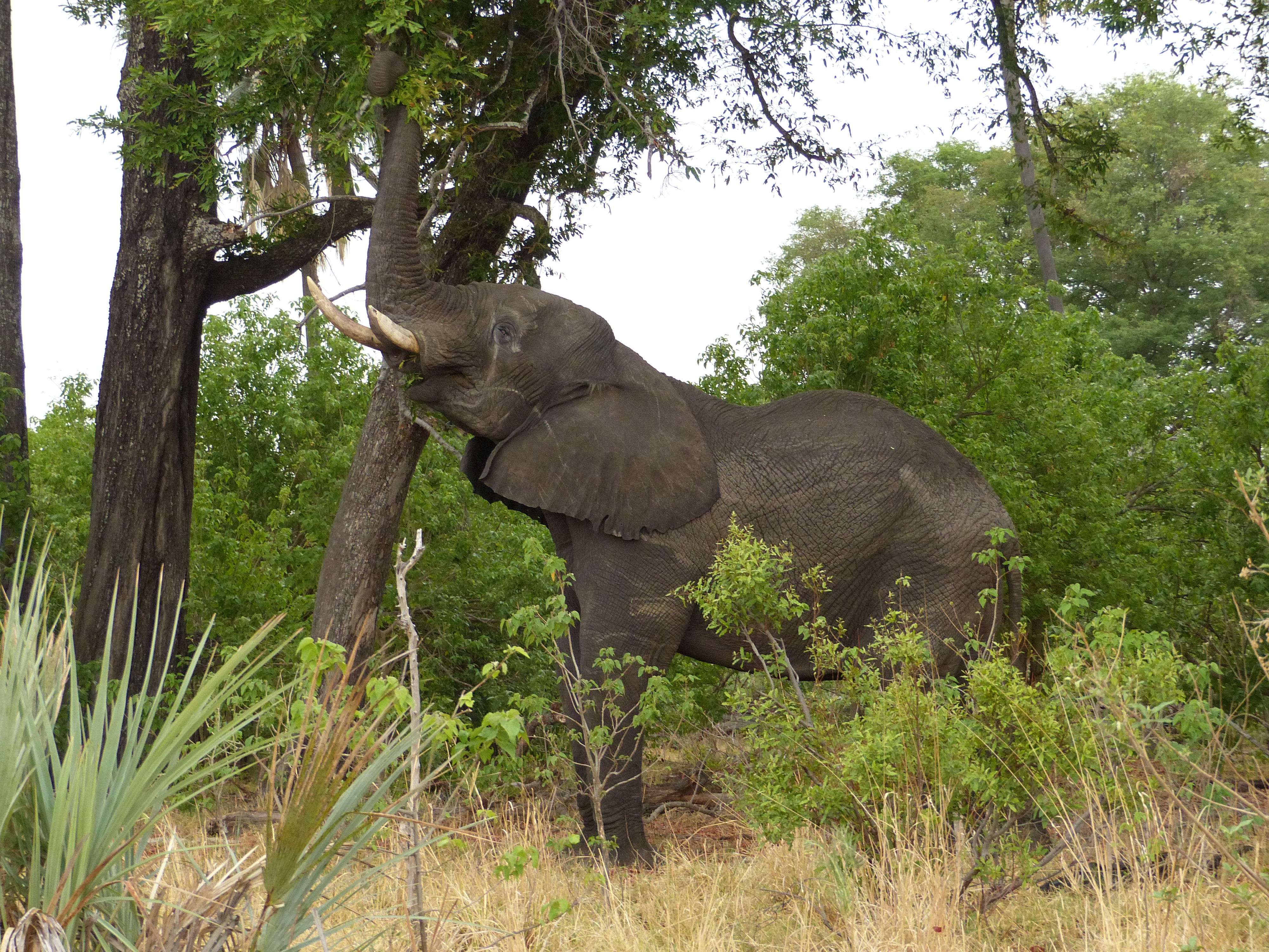 Here is an elephant that came into camp one morning just as we were getting ready to go out on our game drive. We are in the vehicle waiting until it is safe to drive off. It’s amazing that the elephants don’t do more damage to the structures, but they’re pretty good at avoiding them.