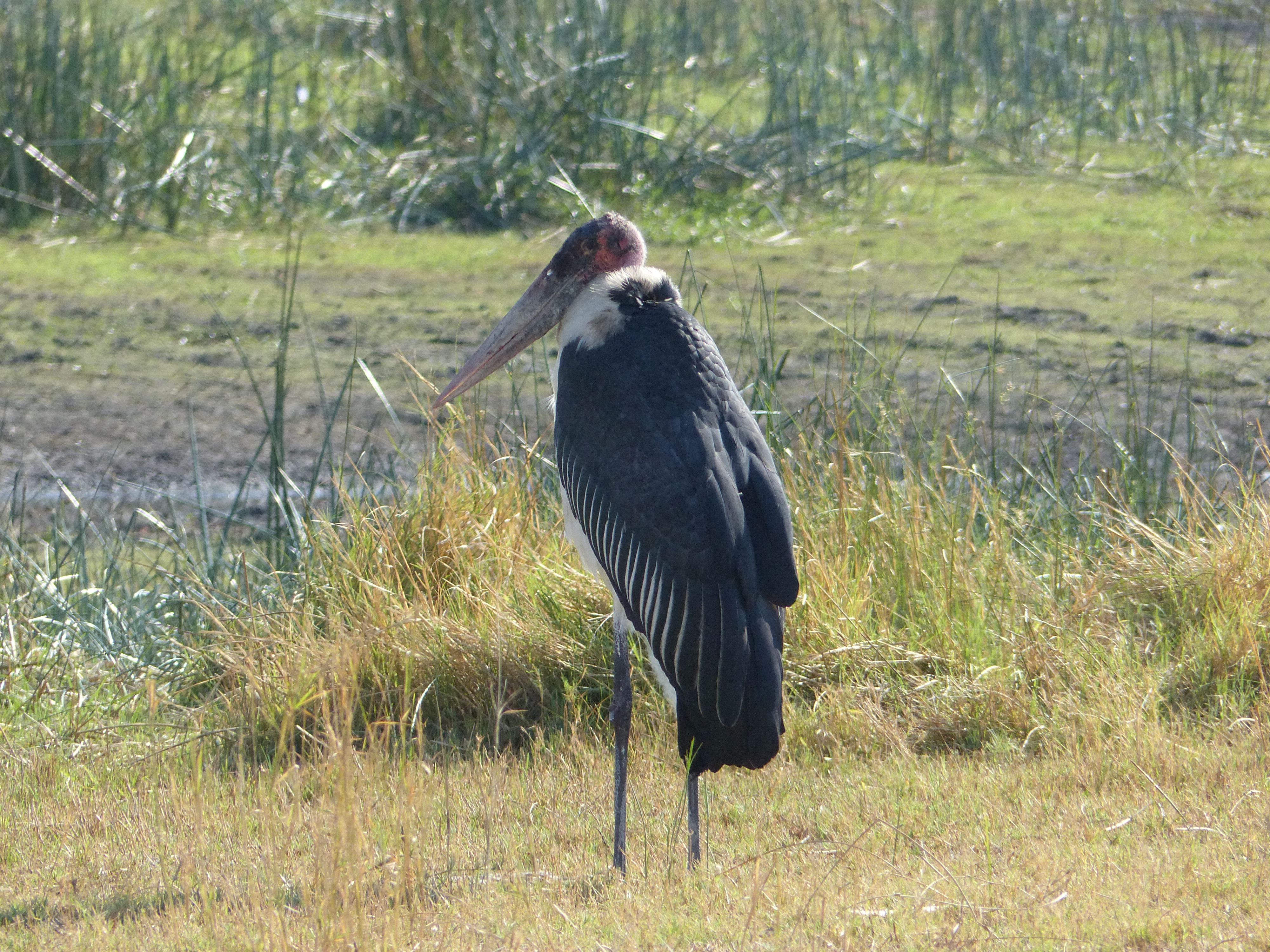 One afternoon we watched a giraffe take a drink. That may not sound like much but it’s a bit of an ordeal for the giraffe. First, because they are very vulnerable with their heads down low, they are very cautious about where and when they drink. This giraffe was constantly looking around for predators. Also, because of their long necks and the blood pressure that builds up when their heads are down, they can’t stay in that position for long. So giraffes tend to take a drink, stand up, take another drink, stand up, etc. They also don’t lower or raise their heads very quickly because that might wreak havoc with their blood pressure as well. The giraffe doesn’t want to pass out because he stood up too quickly!