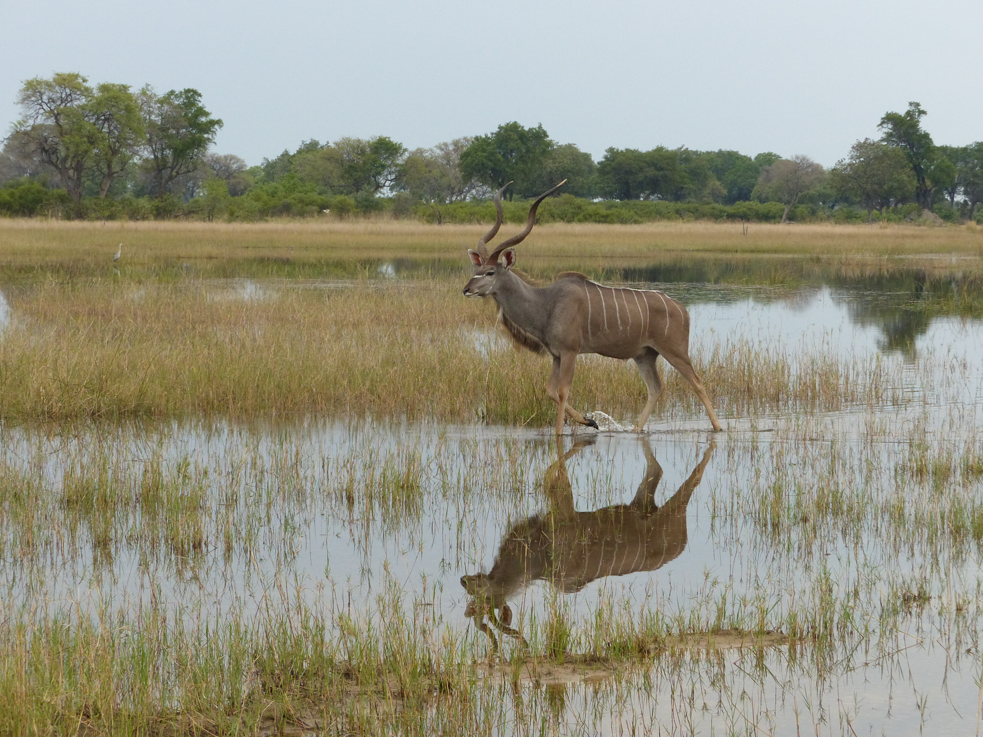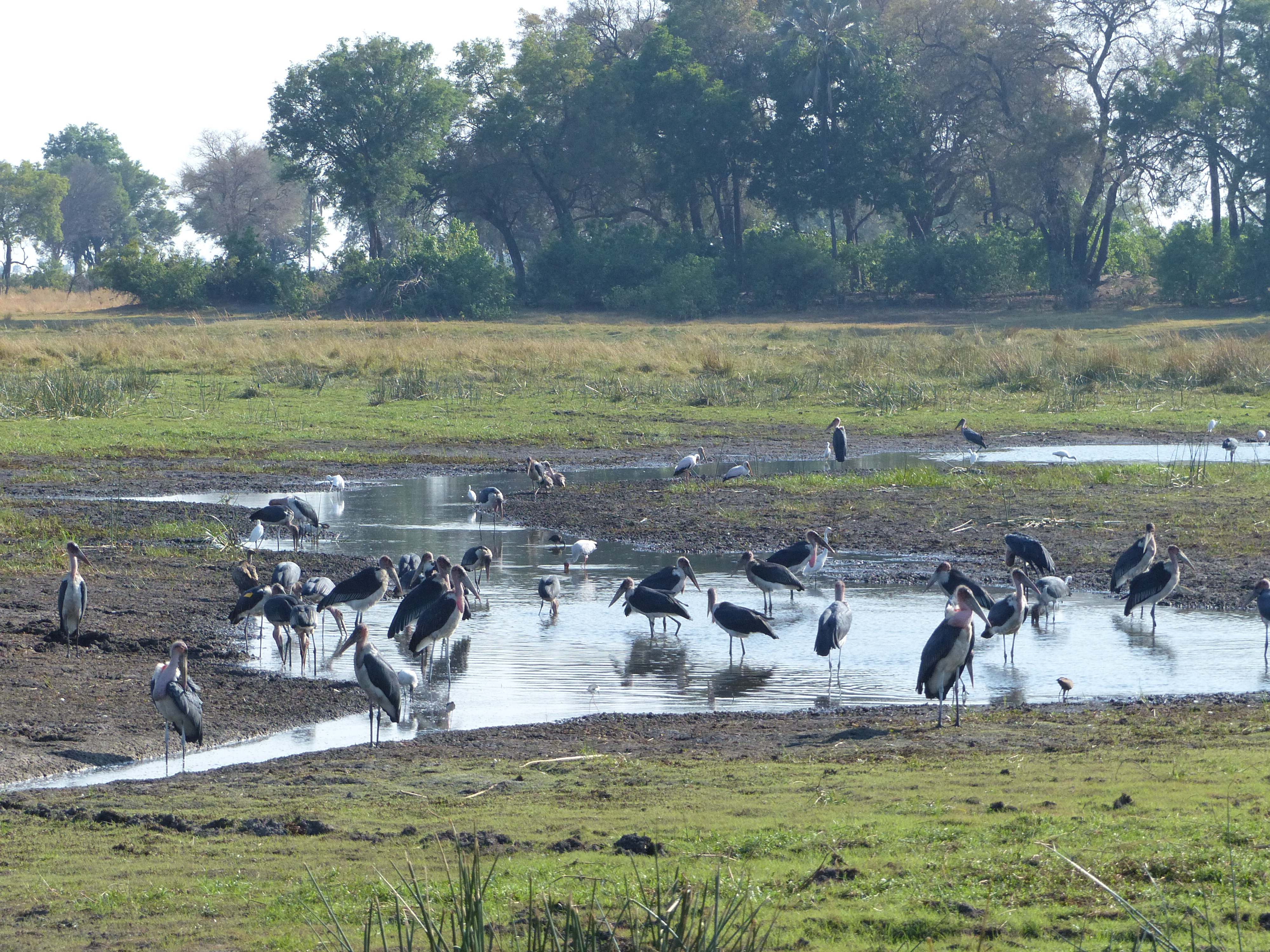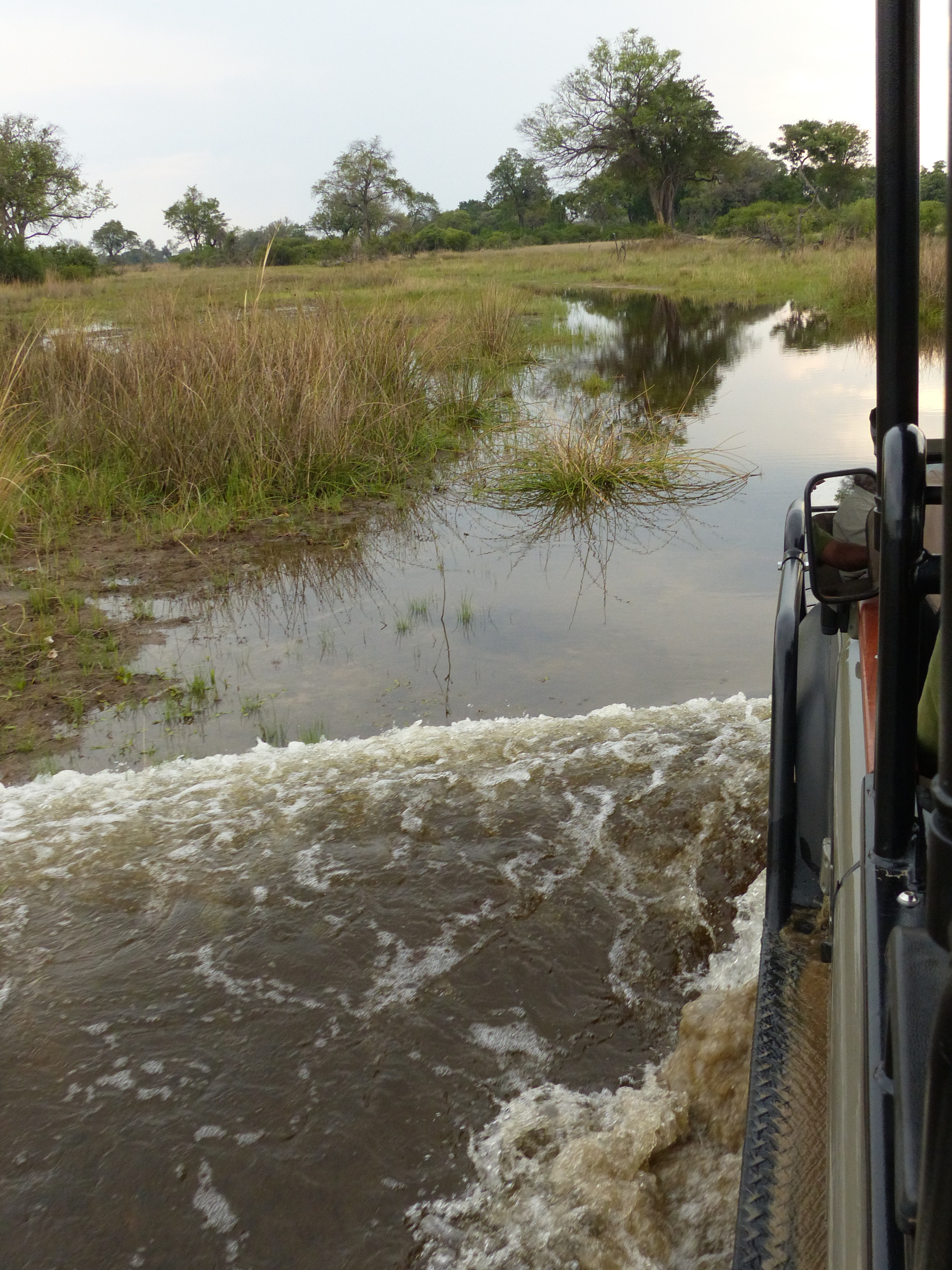 The time of year we visited the Okavango Delta was not the wet season despite the fact that the rains were just starting. The wettest time is from June to August when the waters of the Okavango river flood the delta. There is water in parts of the Delta all year long, but when the floods come, it increases dramatically. Even though it was not flood season, we still travelled through water sometimes in the vehicles and you could get an idea of what it would be like with a lot more water.