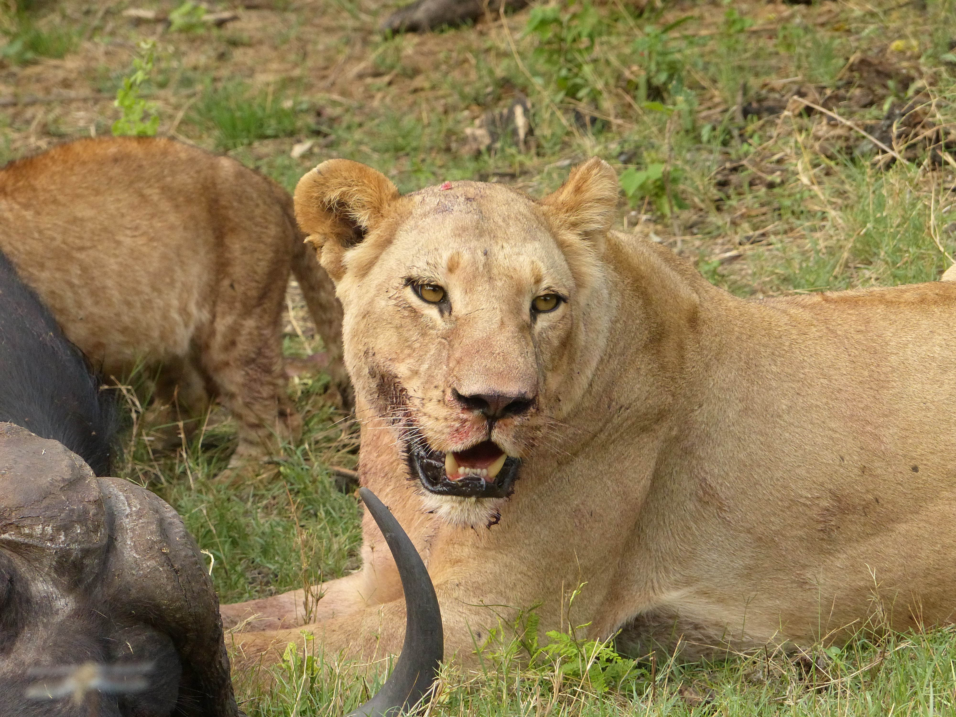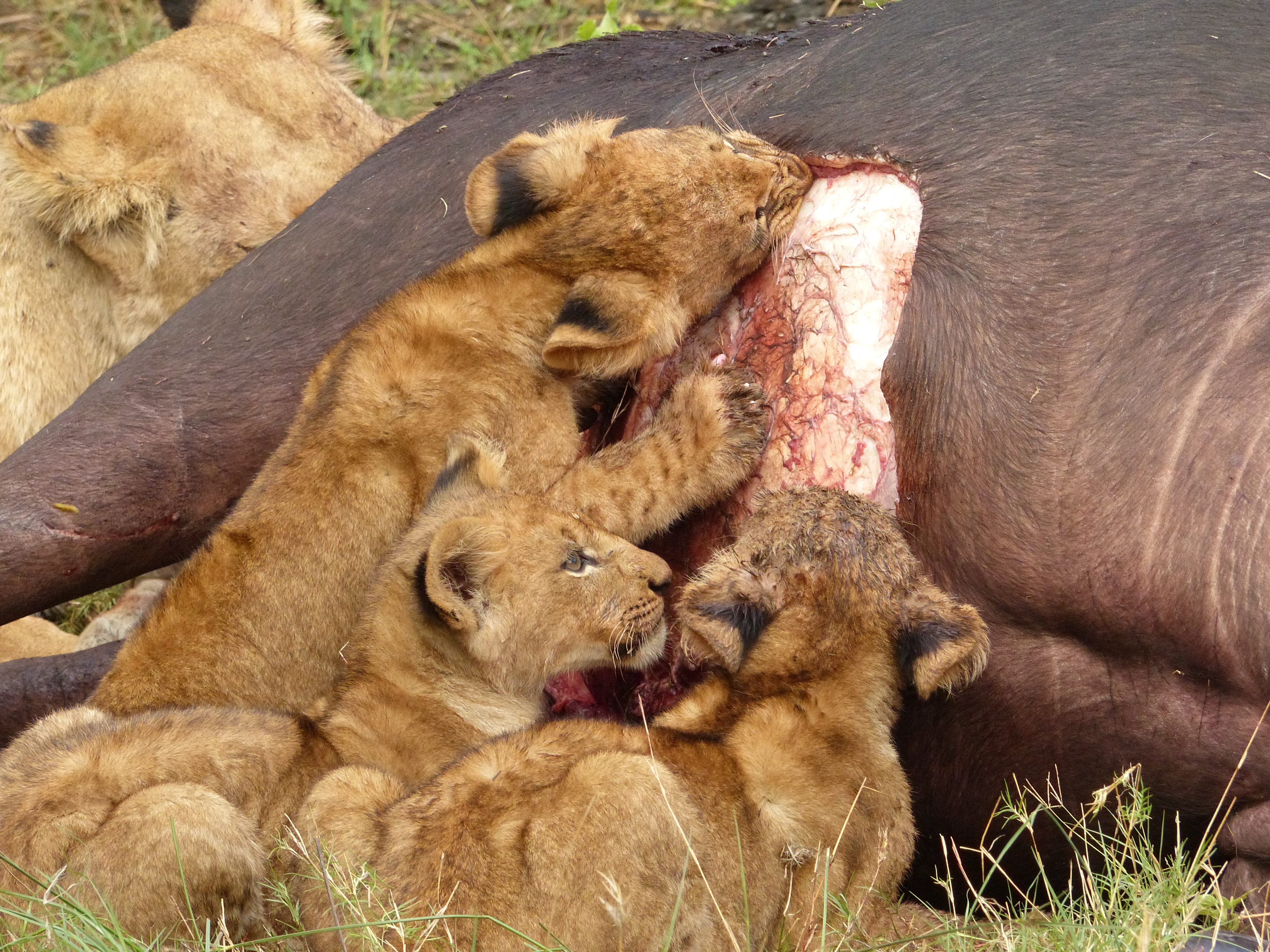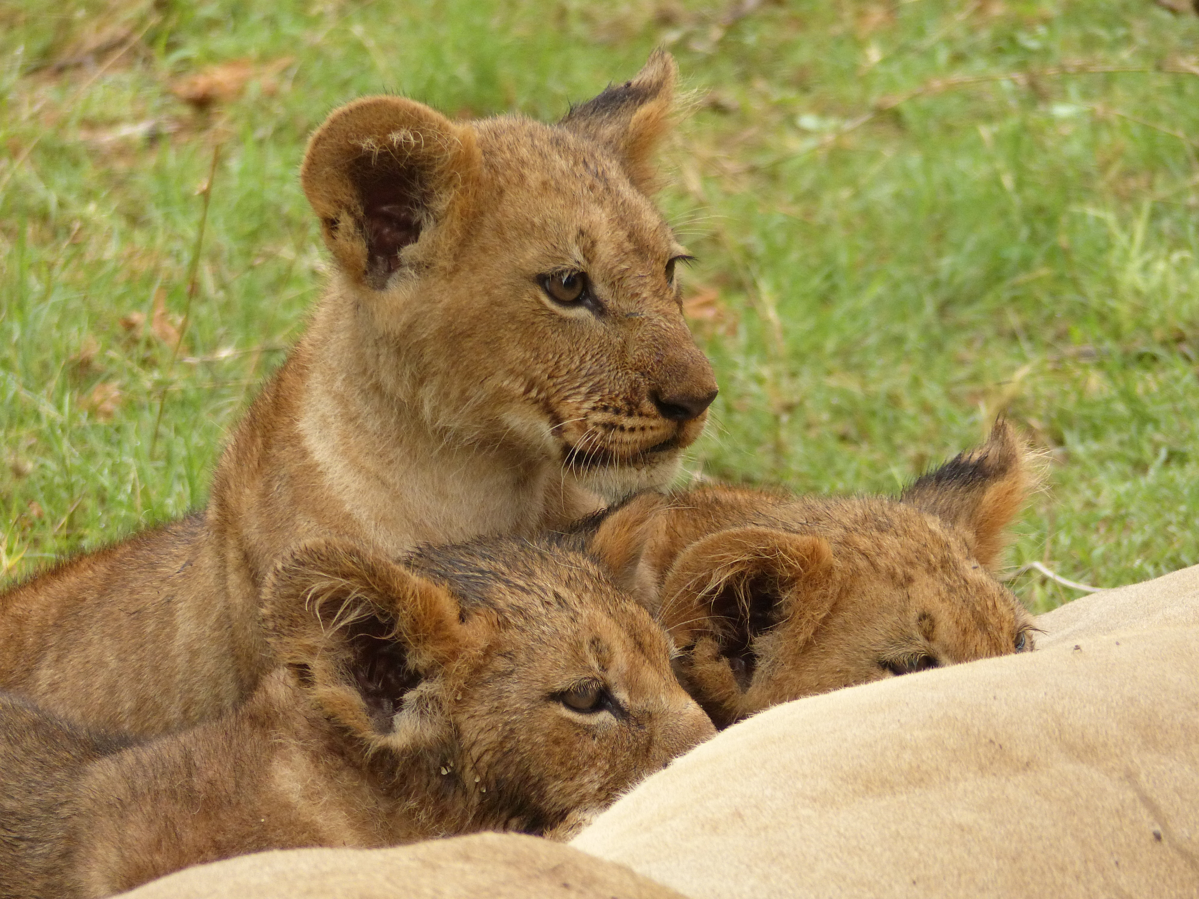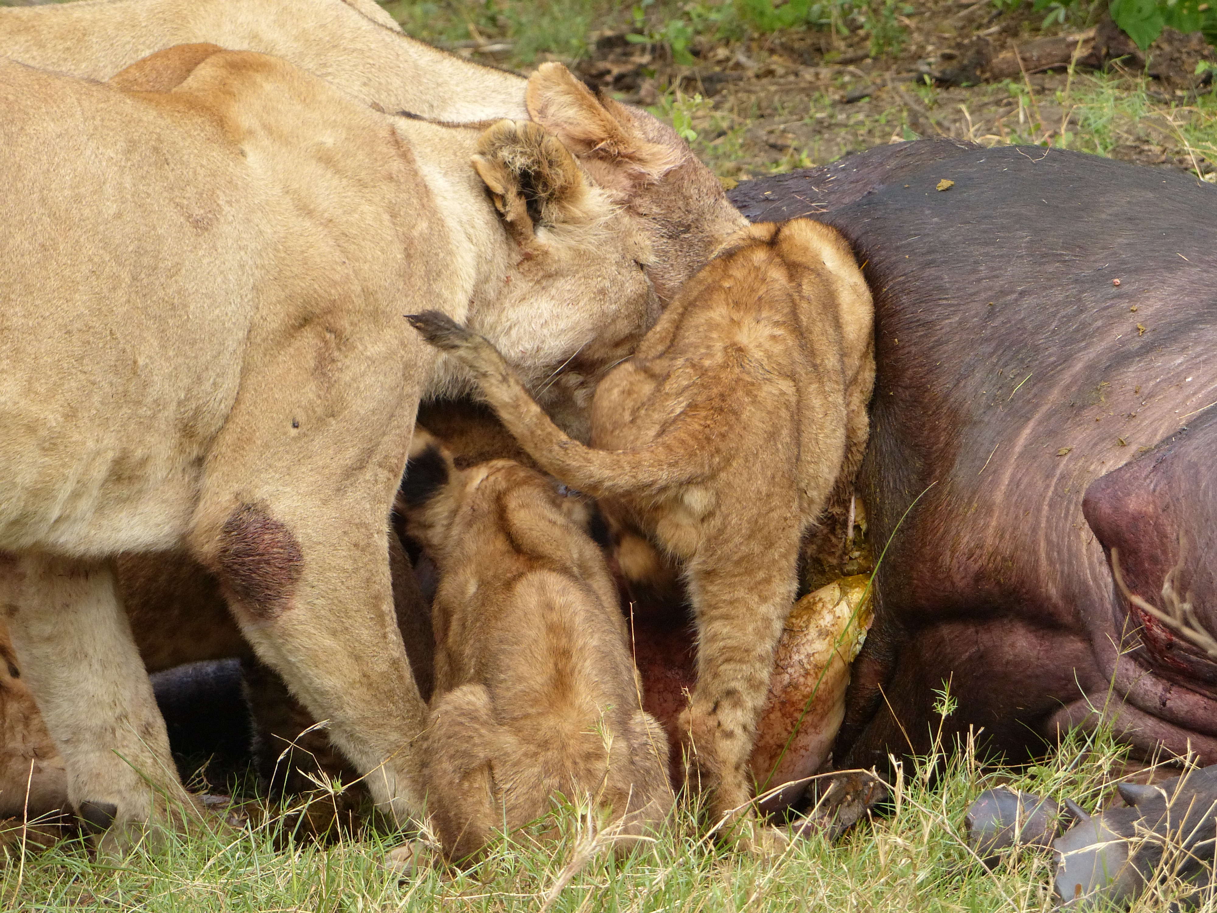 On our last visit to see the lion family with their buffalo kill we saw them lounging and playing in a very peaceful scene. The cubs were so playful and tried to engage their uncle, who was really quite patient with them.