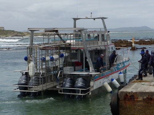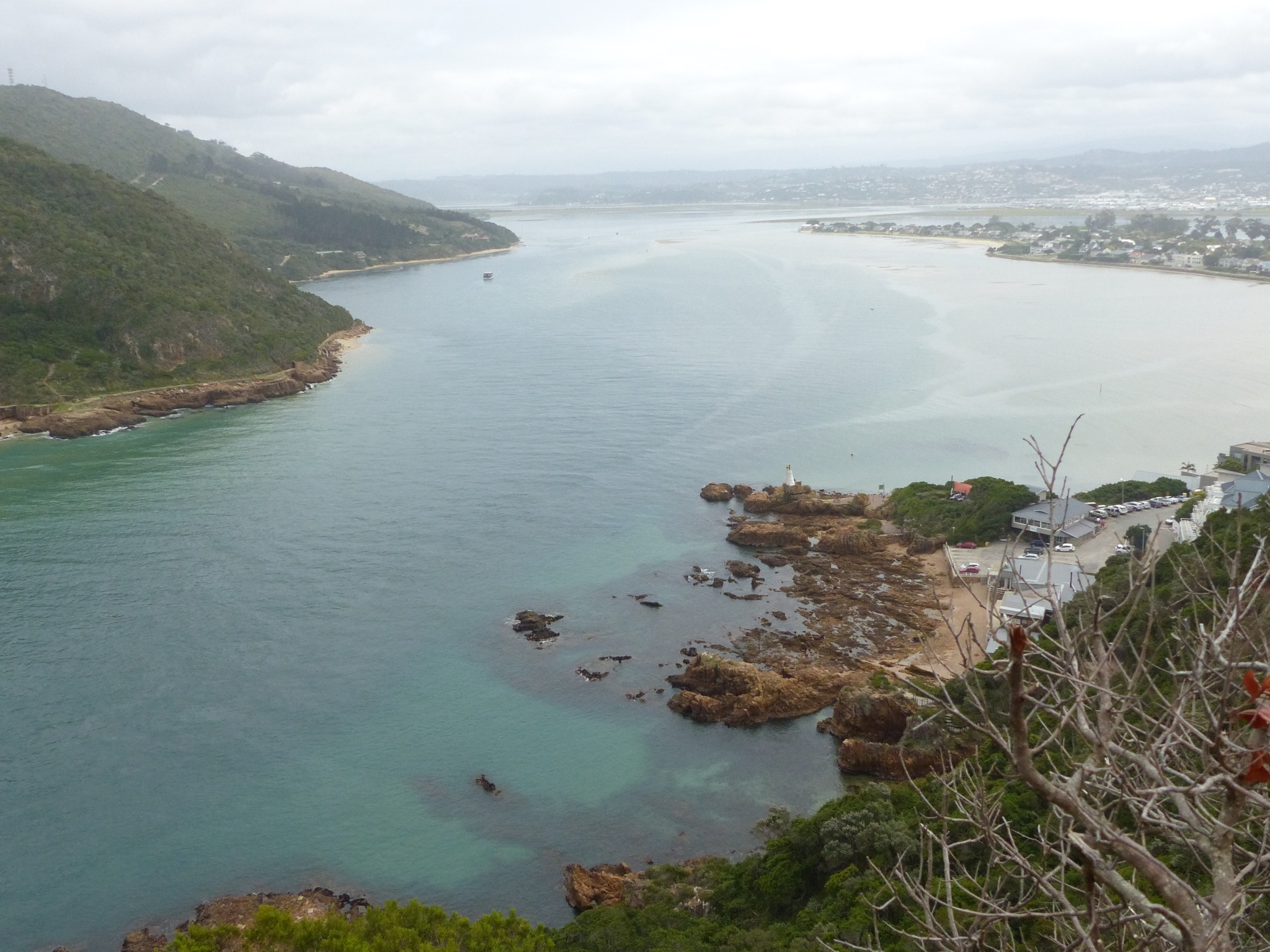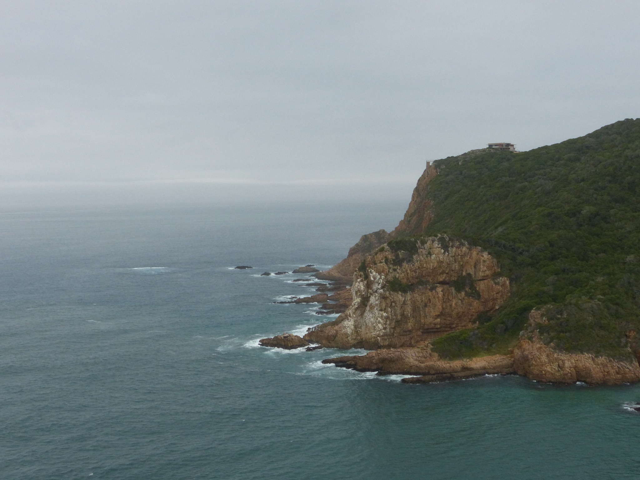 Eventually we got to the turn off for the Cape of Good Hope Nature Reserve. The whole southern tip of the peninsula is set aside as a nature reserve and provides a rather stark contrast of open heath to the spectacular rocky coastline of the tip of the peninsula. We drove out to the end and found a busy parking lot complete with large tour buses. Not our usual gig, but we parked and got out so that we could go to the top of the hill where the lighthouse is located and get the view. They had a funicular railway that carried passengers up the rather steep hike for a small fee. We chose to do this and then walk down. By this time it was bright and sunny with not too much wind and we were enjoying the weather. At the top, we took in the view from the historic lighthouse. The lighthouse sits on the tip of Cape Point, whereas the actual Cape of Good Hope is just to the side. It is believed that as you look out from Cape Point you are looking at the point at which the Atlantic and Indian Oceans meet. Pretty cool! It is not, as is commonly mistaken, the southernmost point in Africa. That distinction belongs to Cape Agulhas, further East along the coastline, closer to where we were in De Kelders.