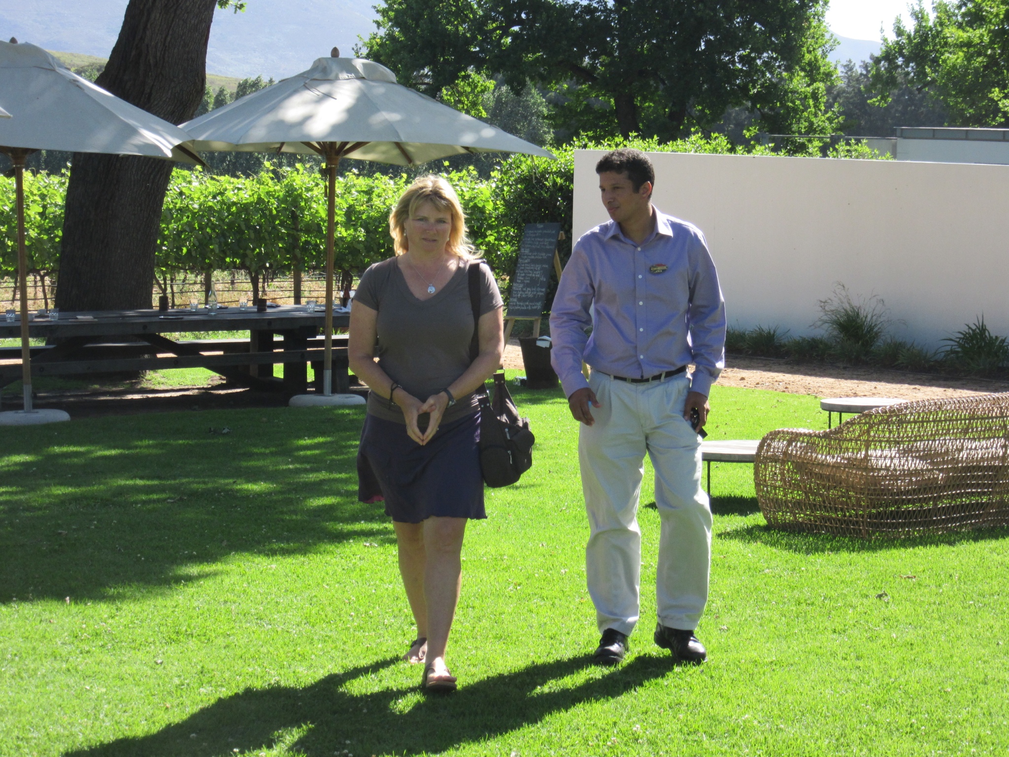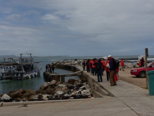 Our next stop was near Simon’s Town at Boulders Beach where there is a land based colony of African penguins. African penguins are endangered and there are only a few of these colonies in the world. We paid a fee and walked down a boardwalk to the beach where we were able to see the birds nesting in the dunes and vegetation as well as hanging out on the beach and rocks and swimming in the ocean. It was pretty neat really see the penguins up close and nice that we could do it without bothering them by staying on the boardwalk.
