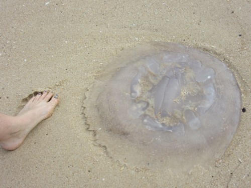 The rest of our time in Jeffrey's Bay was spent relaxing, enjoying the beach, and doing a little shopping. We dined a couple of times at a local place called Nina's which we quite liked, as well as once at a place called In Food Blu. The beach was particularly good for shelling and we found abalone shells and other pretty things. One day we saw a big jellyfish washed up and Michael identified a strange looking thing as a shark's egg.