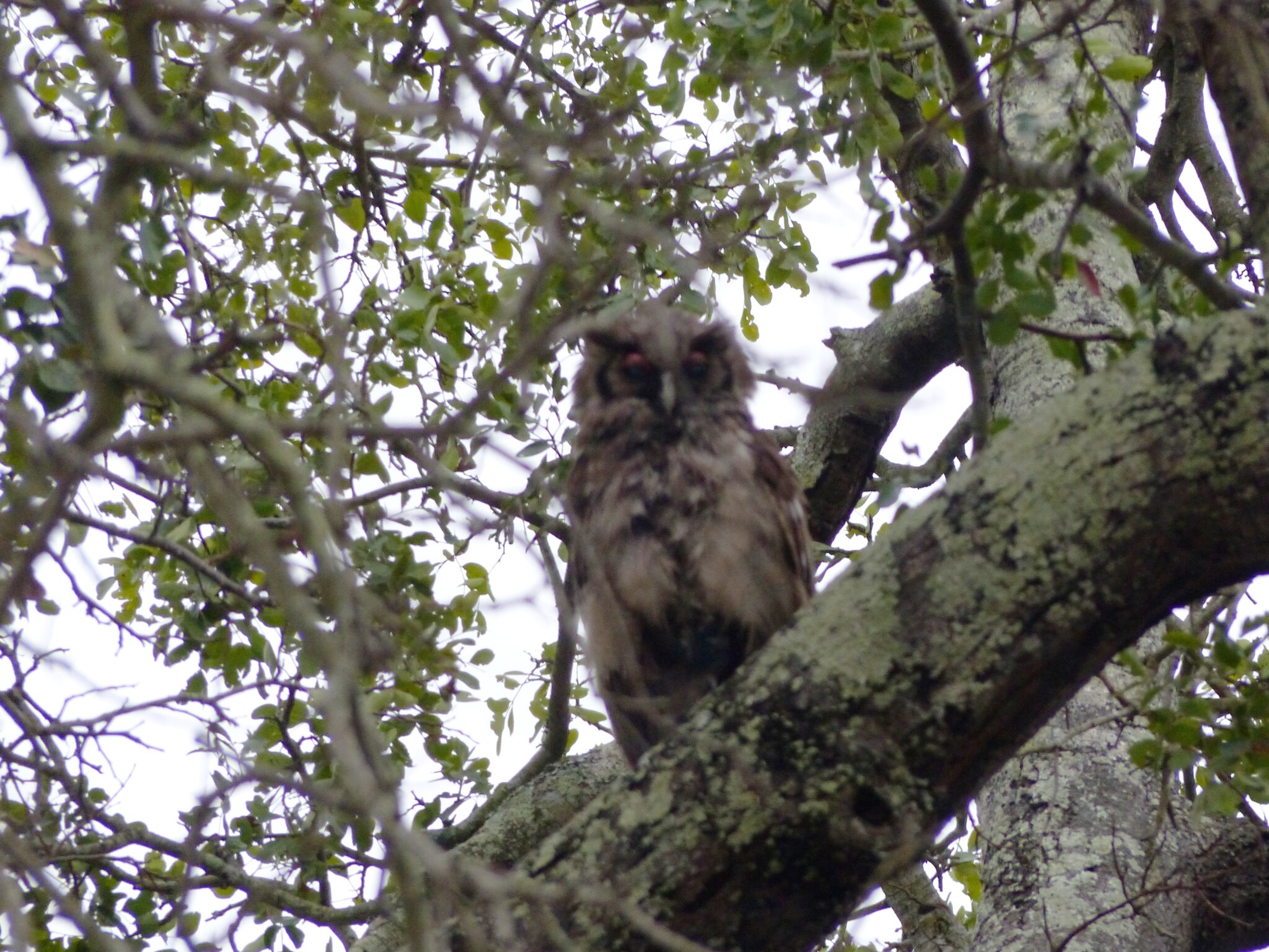 After getting our fill we left the leopard in peace and moved off through the bush to find a suitable spot to have a cup of tea or coffee. On the way through the bush we saw a Verreaux's Giant Eagle-Owl sitting in a tree. It had bright pink eyelids which you could see when it blinked! The light was very dim so my picture is not the best but you can see the pink eyelids.